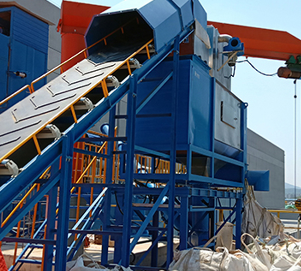 破袋機的工作流程: 袋裝粉粒體物料由皮帶輸送機傳送至45度角的滑板上并依靠重力沿滑板下滑,在下滑過程中由快速轉動的刀片將包裝袋割開,被割開的殘袋和物料滑入滾筒篩進行篩分。從滾筒篩...